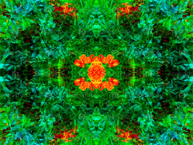 Красивый симметричный узор, составленный в калейдоскопе из элементов живой природы