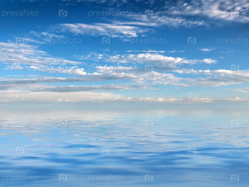 Отражение солнечного летнего неба в спокойной воде океана