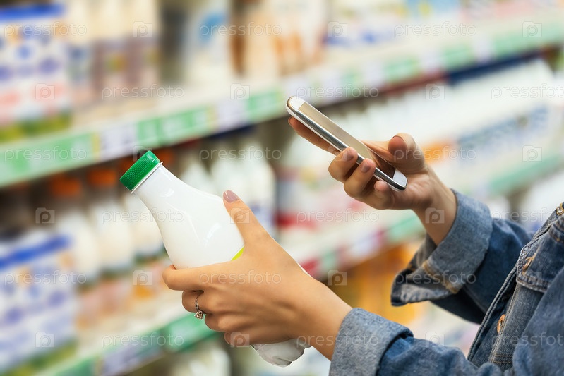 Покупатель фотографирует бутылку молока, тайный покупатель. Проверка качества товара по штрих-коду