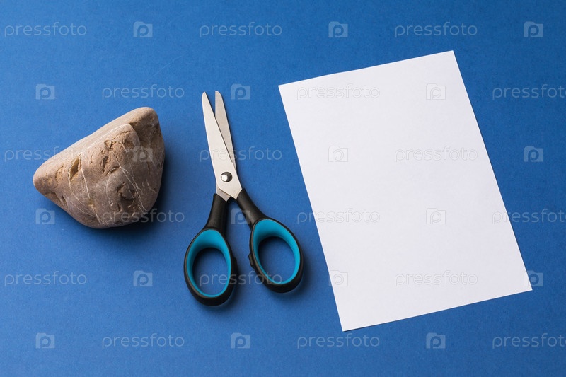 Камень, ножницы, бумага на синем фоне, старая игра
