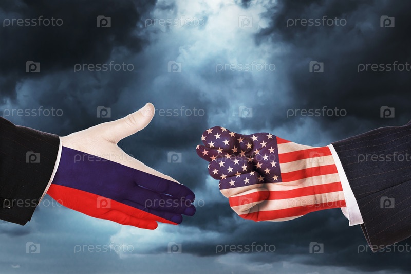 Руки на фоне неба. Концепция на тему предложения о дружбе и отношениях между Россией и Америкой