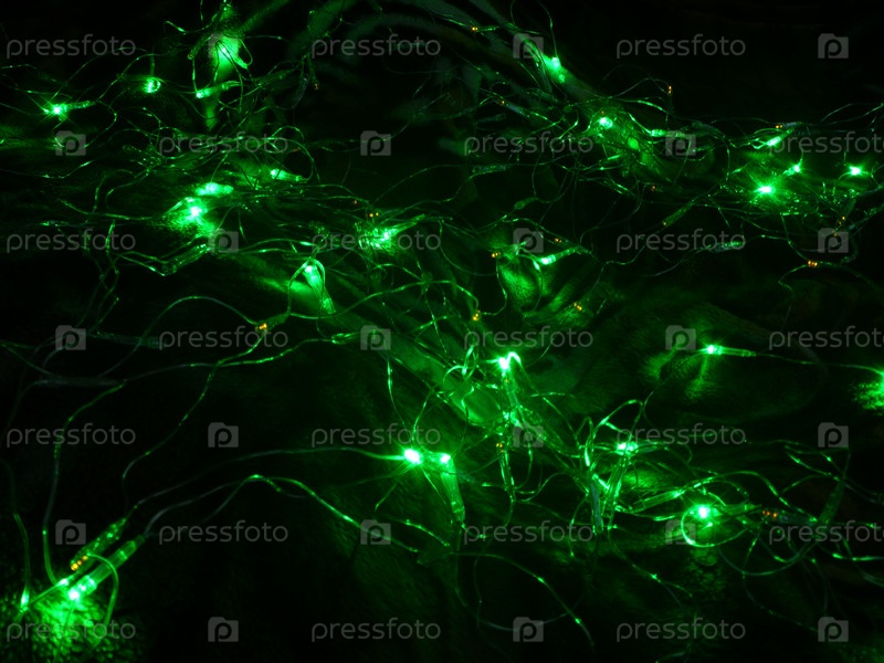 Фон из светящейся гирлянды зеленого цвета на черном фоне
