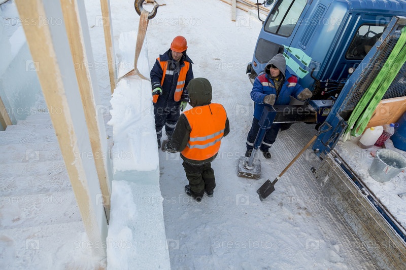Рабочие на монтаже ледового городка