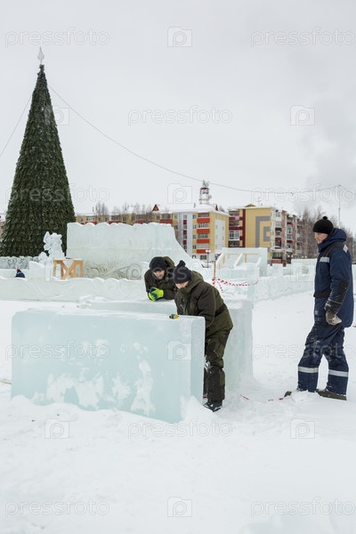 Монтажники на разметке ледяных блоков