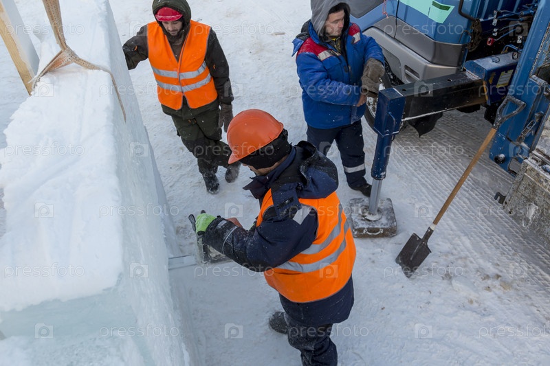 Рабочие на монтаже ледового городка
