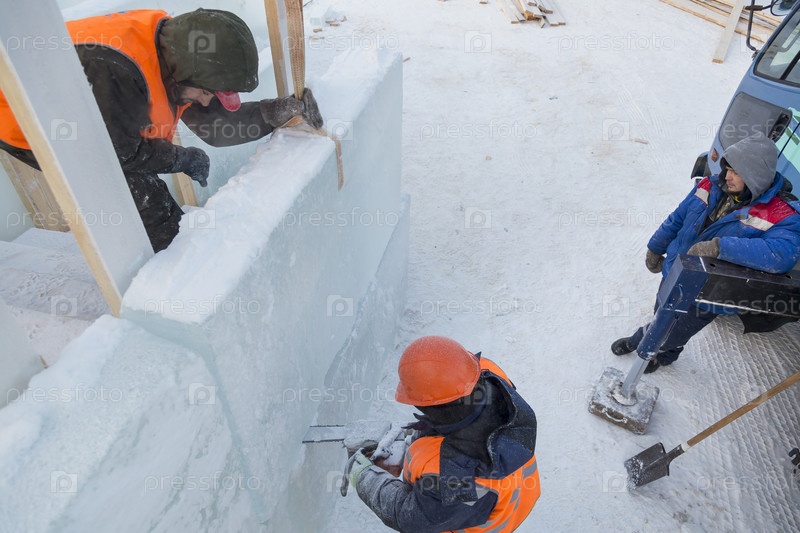 Рабочие на монтаже ледового городка