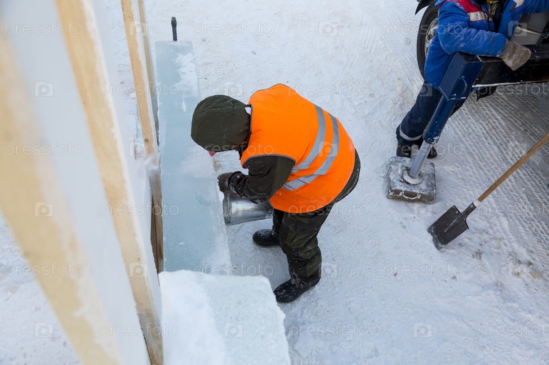 Рабочие на монтаже ледового городка