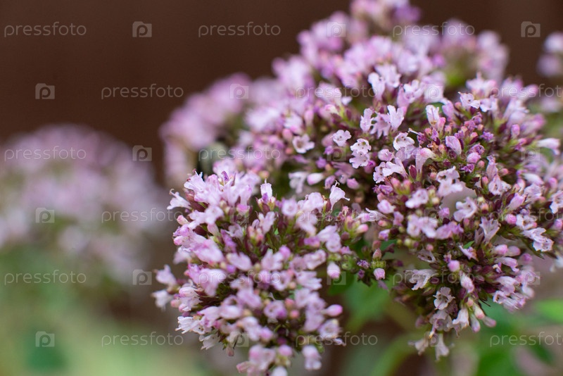 Растение орегано. макросъемка, крупный план, полевые сиреневые ароматные цветы. Органическая натуральная приправа