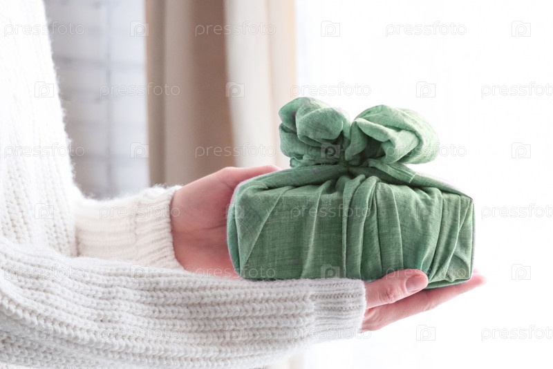 Упаковка подарков в ткань на рождество в стиле фурошики. Экологически чистая концепция. своими руками, уютная зима