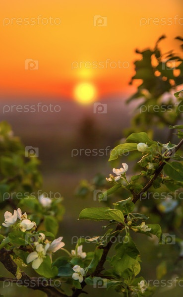 Цветущая яблоня на рассвете