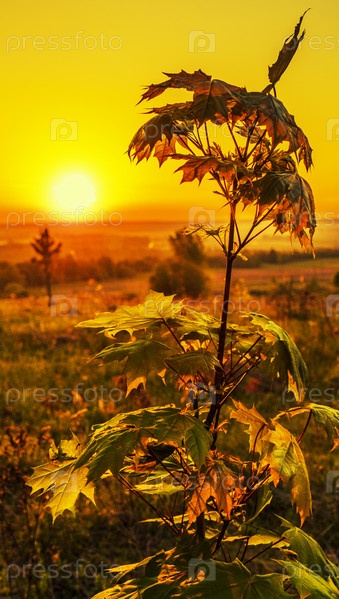 Клен на рассвете в контровом свете