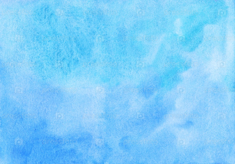 Акварель светло-голубой цвет лагуны фоновой живописи. Акварельные яркие небесно-голубые пятна на бумаге. Художественный фон