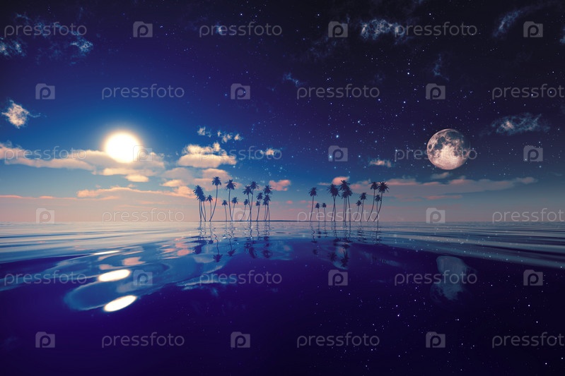 Солнце и луна за островом