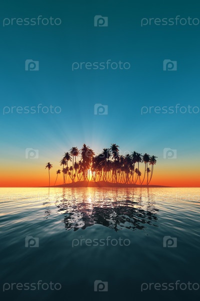 Силуэт бирюзового острова на закате