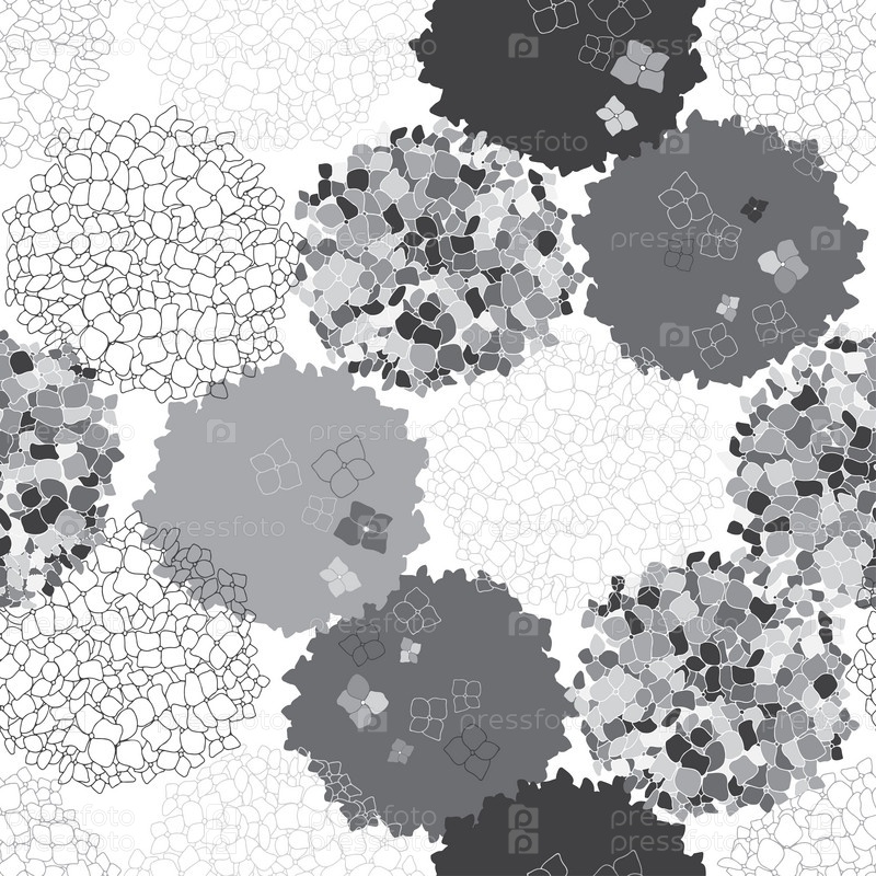Монохромный векторный бесшовный цветочный узор с гортензией