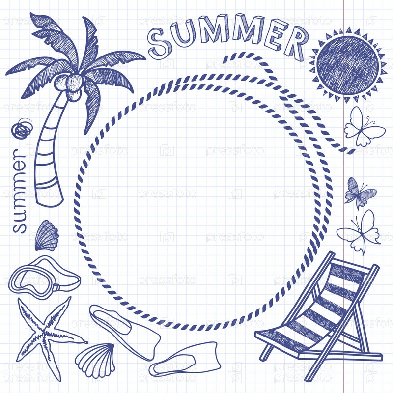 Летний фон с рамкой. Векторные рисованной летние символы