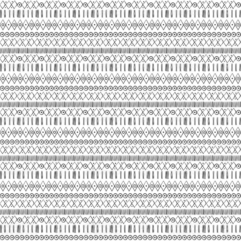 Бесшовный абстрактный узор с нарисованными вручную геометрическими элементами. Черно-белый векторный фон