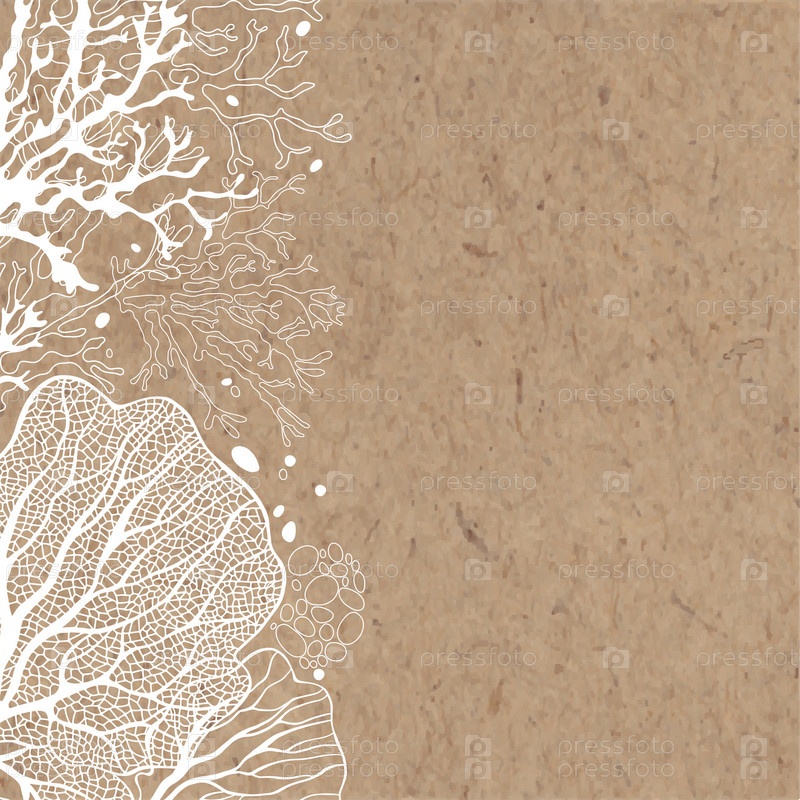Векторный фон с морскими растениями на крафт-бумаге. Может быть открытка, приглашение, элемент дизайна