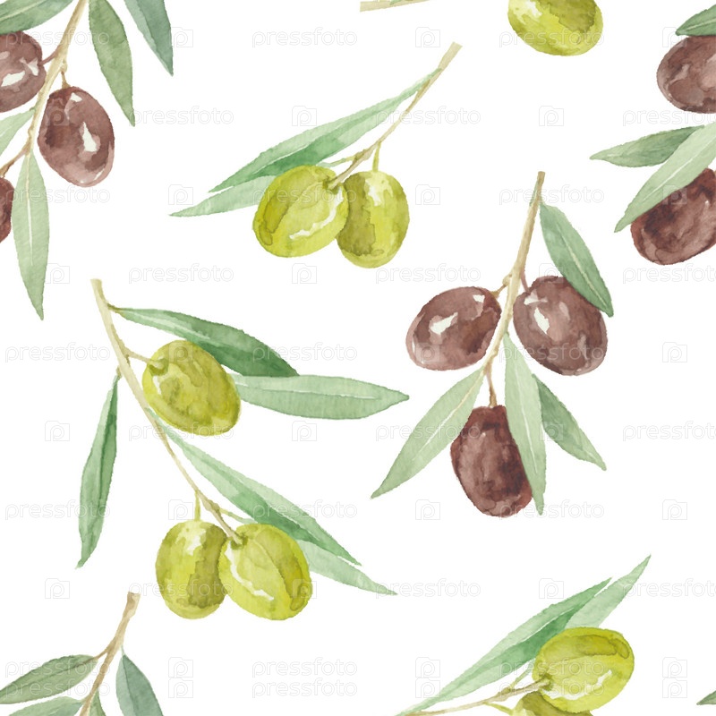 Акварель бесшовный узор с оливковыми ветвями