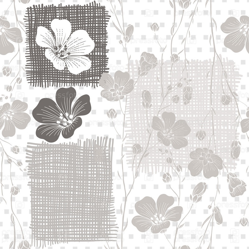 Монохромный бесшовный рисунок абстрактных цветов. Ручной обращается цветочный фон