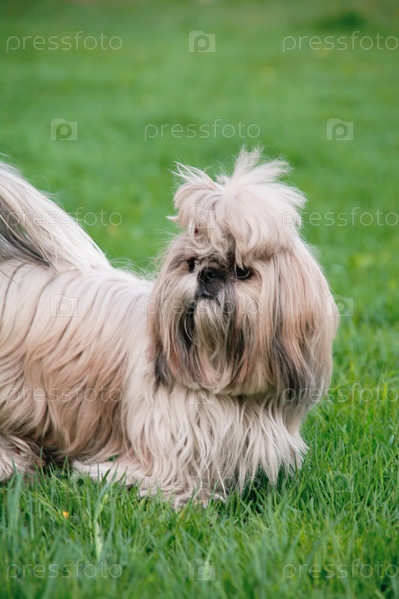 Щенок шицу на траве