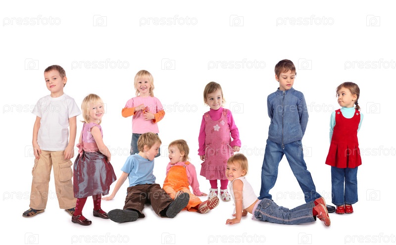 Маленькие дети на белом фоне, коллаж