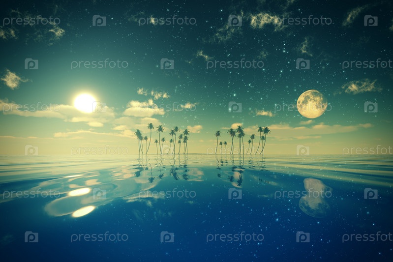Солнце и луна за островом