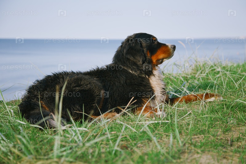 Бернский зенненхунд лежит