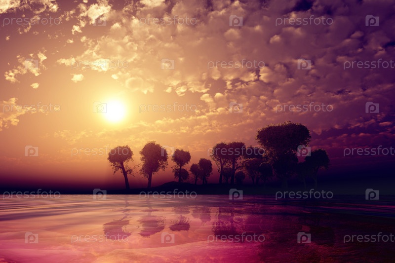 Фиолетовый закат над островом