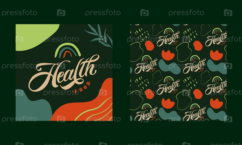 Здоровое питание векторный текст и узор. Векторный дизайн типографии здоровой пищи для медицинских центров, органических и вегетарианских магазинов, плакат, логотип. Векторная иллюстрация