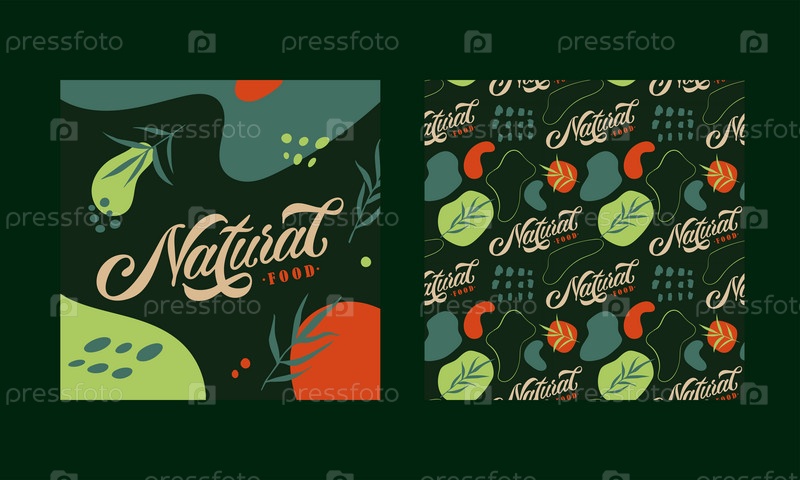 Векторный дизайн натуральной пищевой типографии для медицинских центров, органических и вегетарианских магазинов, плакат, логотип. Натуральный пищевой векторный текст. Каллиграфические надписи ручной работы. Векторная иллюстрация