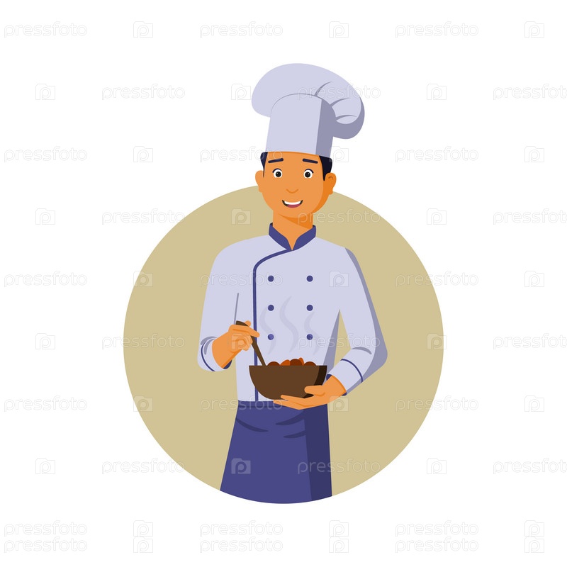 Логотип шеф-повара с чашкой еды на фоне круга. Повар, кондитер