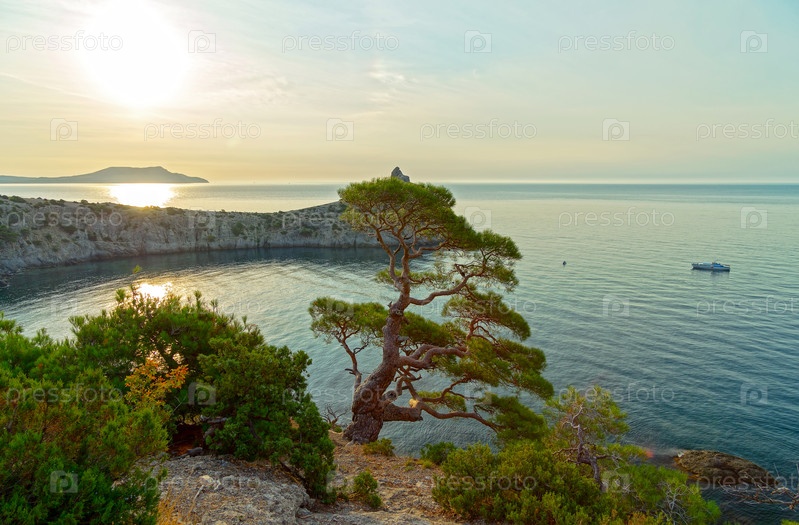 Красивый морской пейзаж с реликтовой сосной. Крым, Новый Свет