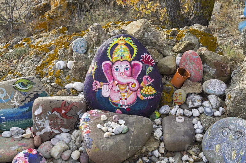 Бог Ганеша - рисунок на камне в самодельном алтаре. Мыс Меганом, Крым