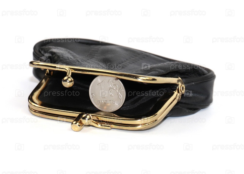 Металлический российский рубль в старом пенсионерском кошельке бедного пенсионера