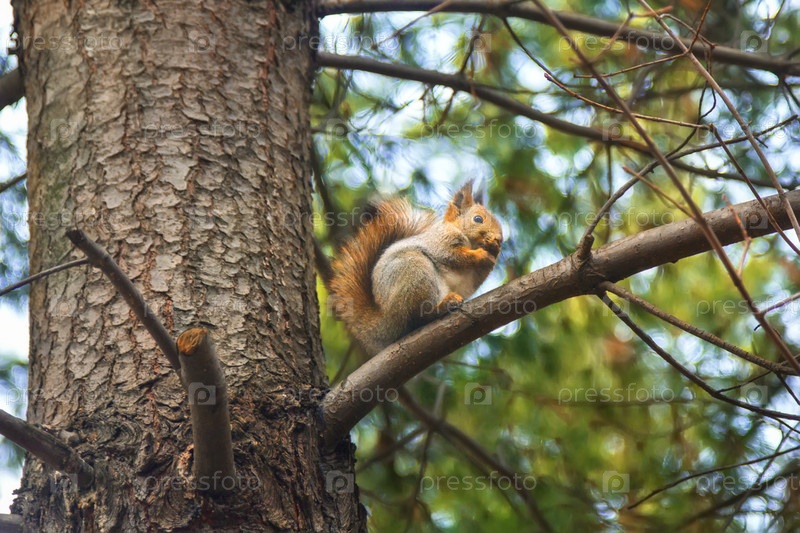 Белка на ветке сосны