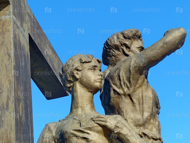 Фрагмент скульптурной композиции "Царственные страстотерпцы" за несколько минут до казни". Перед Храмом-на-Крови в честь Всех Святых. Екатеринбург, Россия