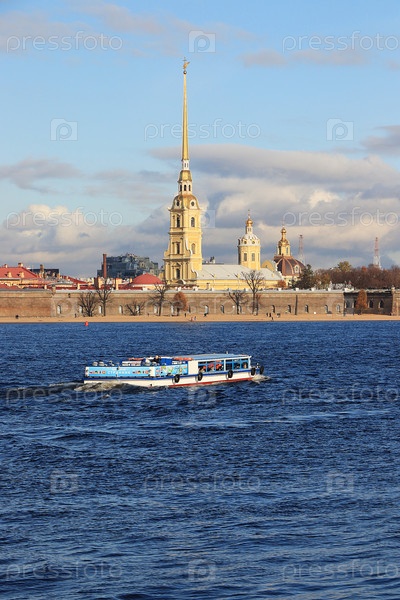 На фото Петропавловская крепость и туристический катер, плавающий по реке Ной.Крепость заложена 16 (27) мая 1703 года по совместному плану Петра I и французского инженера Ламбера: 6 бастионов