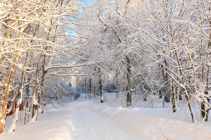 Русская природа зимой, новогодний фон. После снегопада ветки деревьев покрыты снегом и сверкают на солнце. Это красивое зимнее знамя, новогодняя открытка