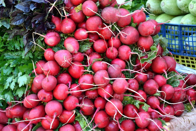 Свежие овощи и зелень продаются на базаре