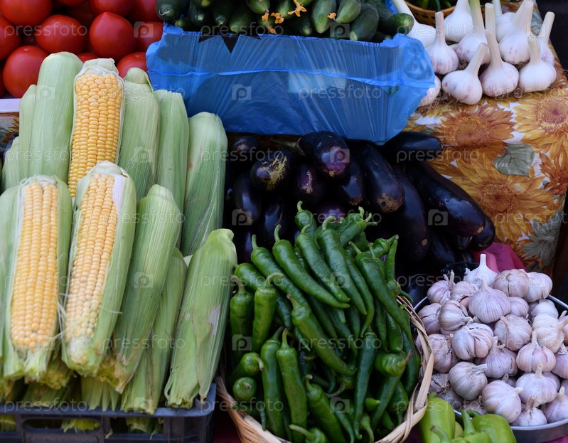 Свежие овощи и зелень продаются на базаре