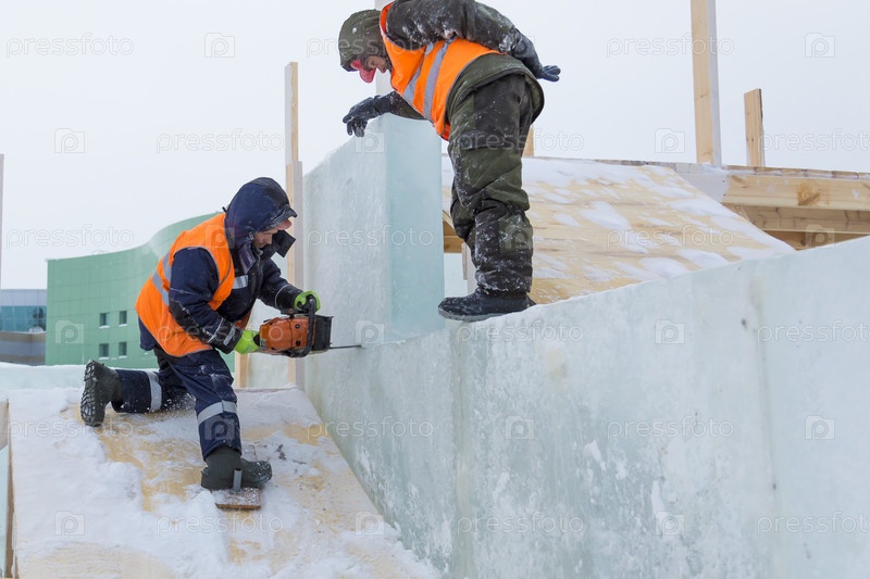 Рабочие на монтаже ледового городка