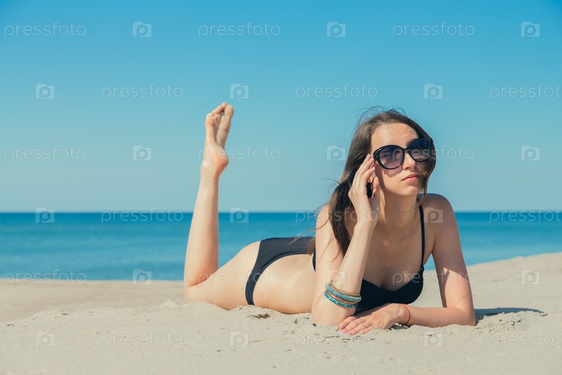 Молодая женщина загорает