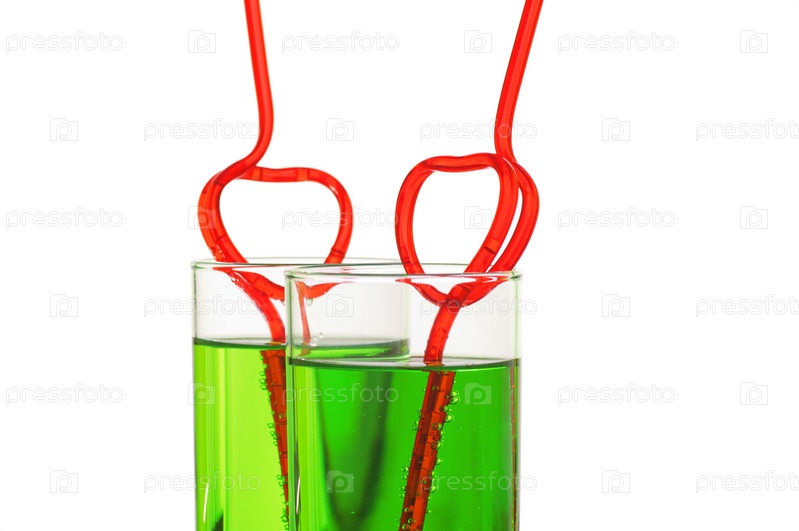 Два стакана с трубочками-сердечками