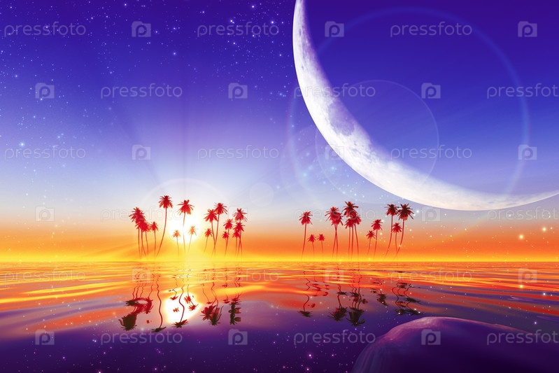 Большая луна над фиолетовым закатом