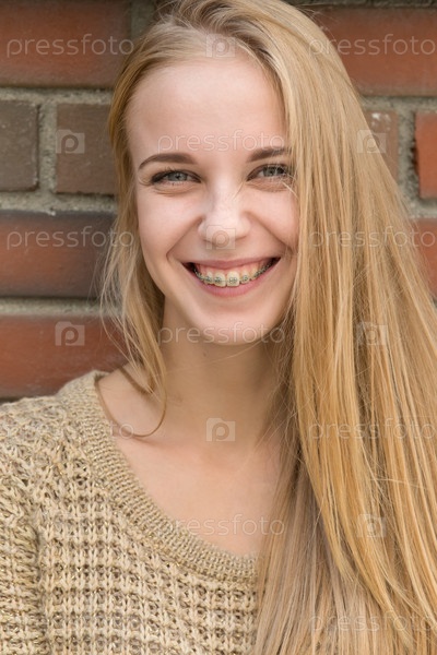 Женщина с брекетами