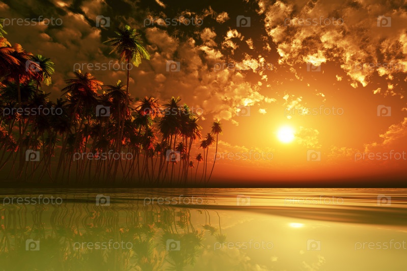 Оранжевый закат над тропическим морем