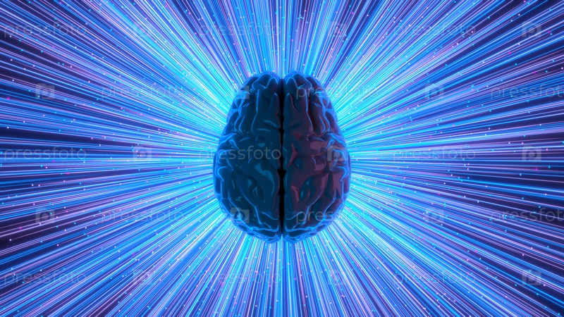 Абстрактная визуализация активности человеческого мозга со следами и частицами