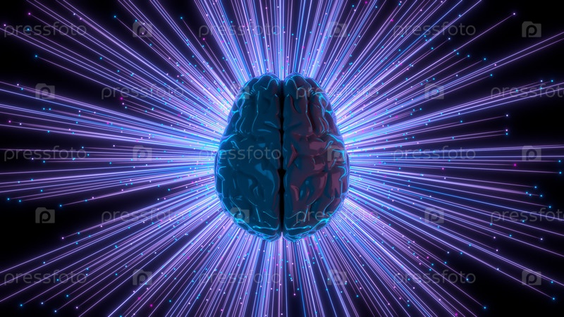 Абстрактная визуализация активности человеческого мозга со следами и частицами