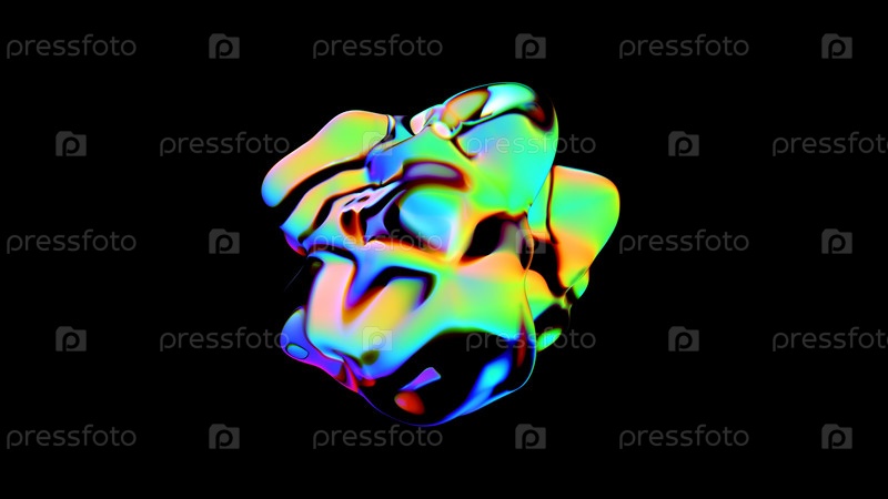 3D-рендеринг абстрактной цветовой формы с подробным отражением и дисперсией на черном фоне